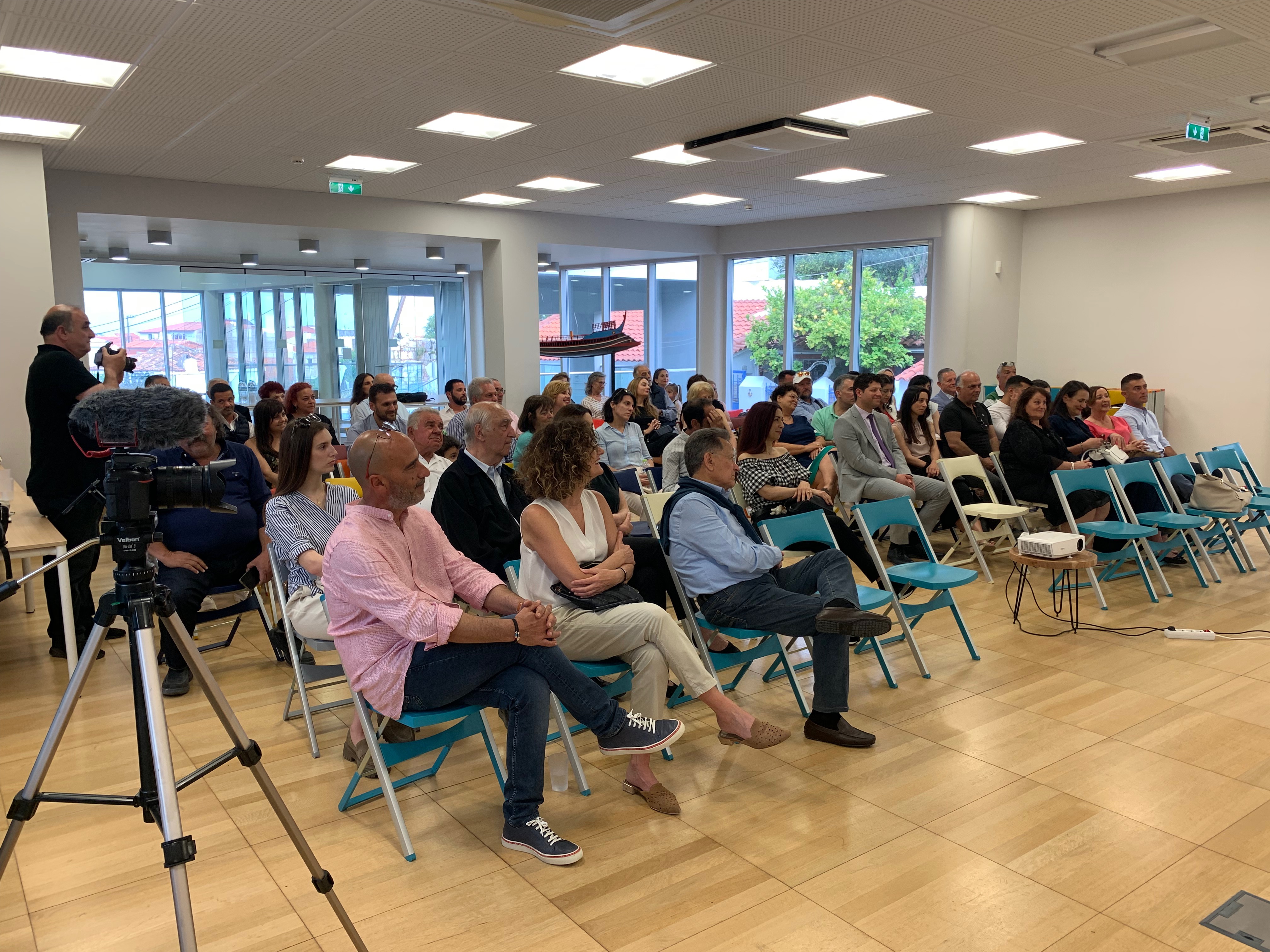 | Η έναρξη της εκδήλωσης. Στο κέντρο η κ. Hornewall έχοντας αριστερά της τον κ. Χριστουλάκη |